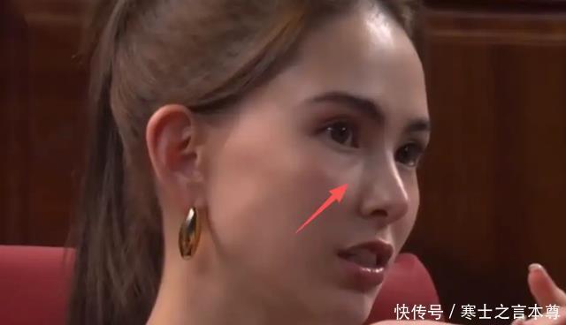这张可能更明显,脸上有医美痕迹,笑起来苹果肌过于突出,跟整张脸有些不相配。 脸部线条没有平整的过度,似乎一下从平地到了高山。 还有当天的服装也有些不合适,坐下去的时候,上半身也给人突兀的感觉。